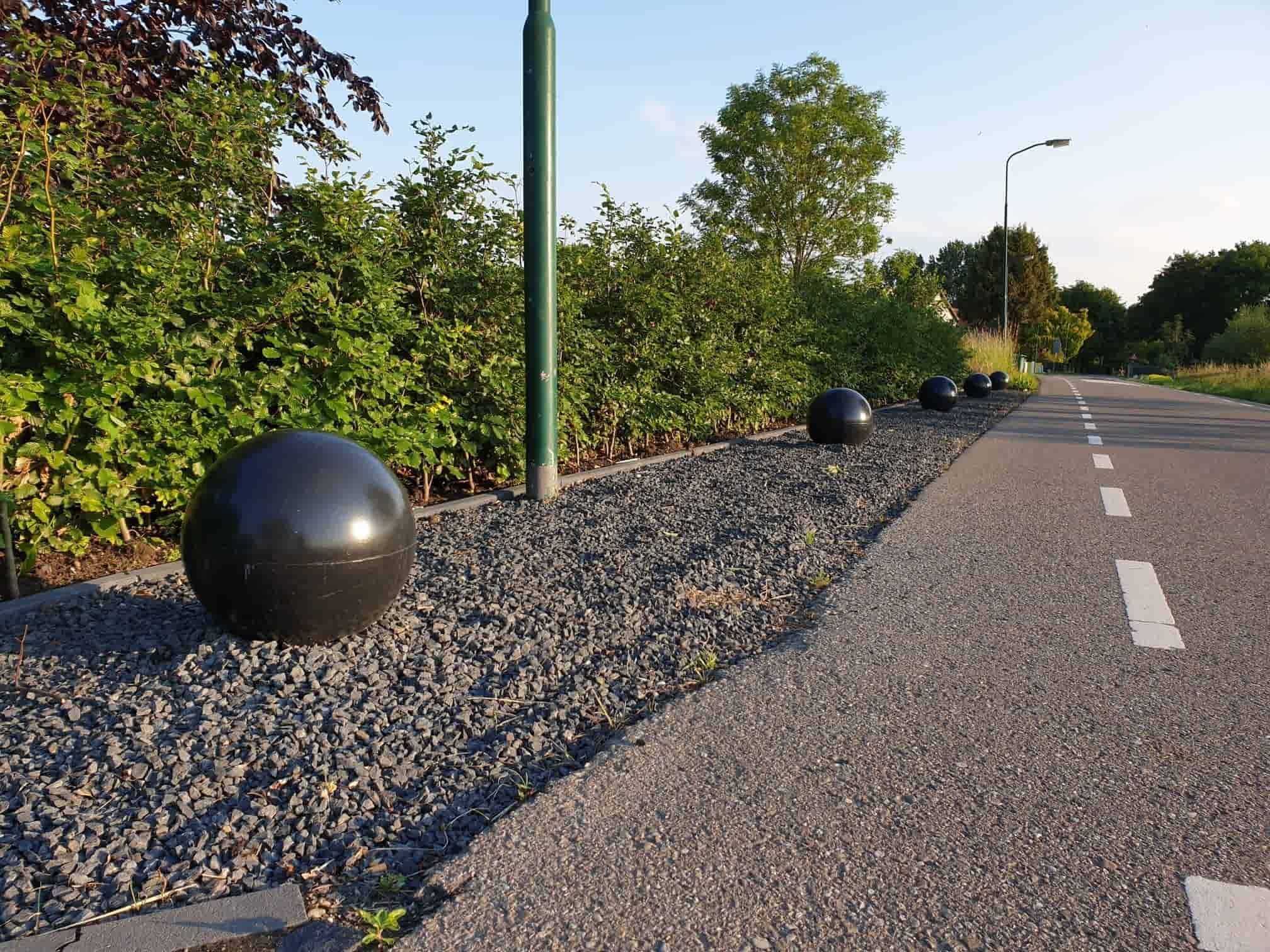 Betonnen bollen zijn ook verkrijgbaar in verschillende maten en kleuren, waardoor het gemakkelijk is om de perfecte pasvorm voor elke buitenruimte te vinden. Bovenstaande bol is van zelfverdichtend beton gemaakt en vervolgens in de kleur zwart gecoat. Tevens is deze betonnen bol voorzien van een schroefhuls M16. Deze betonnen bol weegt circa. 60 kg.