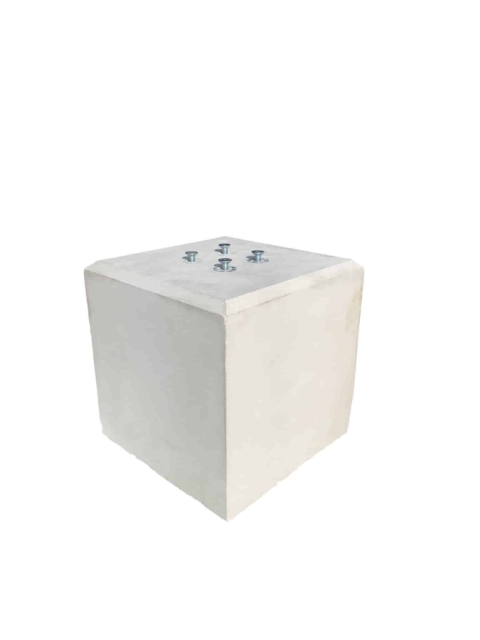De bovenstaande betonpoer wordt geleverd inclusief vier M10 imbus bouten met een hart op hart afstand van 7 cm. Geleverd in de kleur grijs en gemaakt van zelfverdichtend beton. Totaal gewicht: 64 kg. Klik hier voor de detailtekening van de betonpoer.