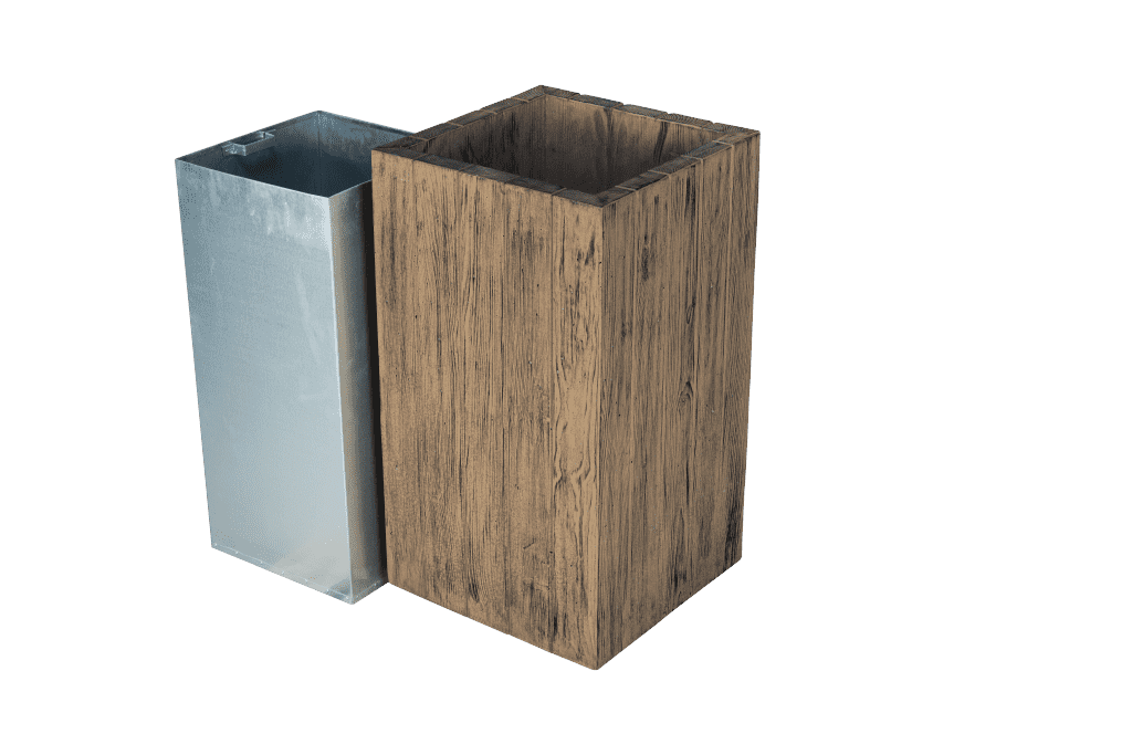 Bloembak Stonewood 45x45 cm en 80 cm hoog met galgavaniseerde inzet