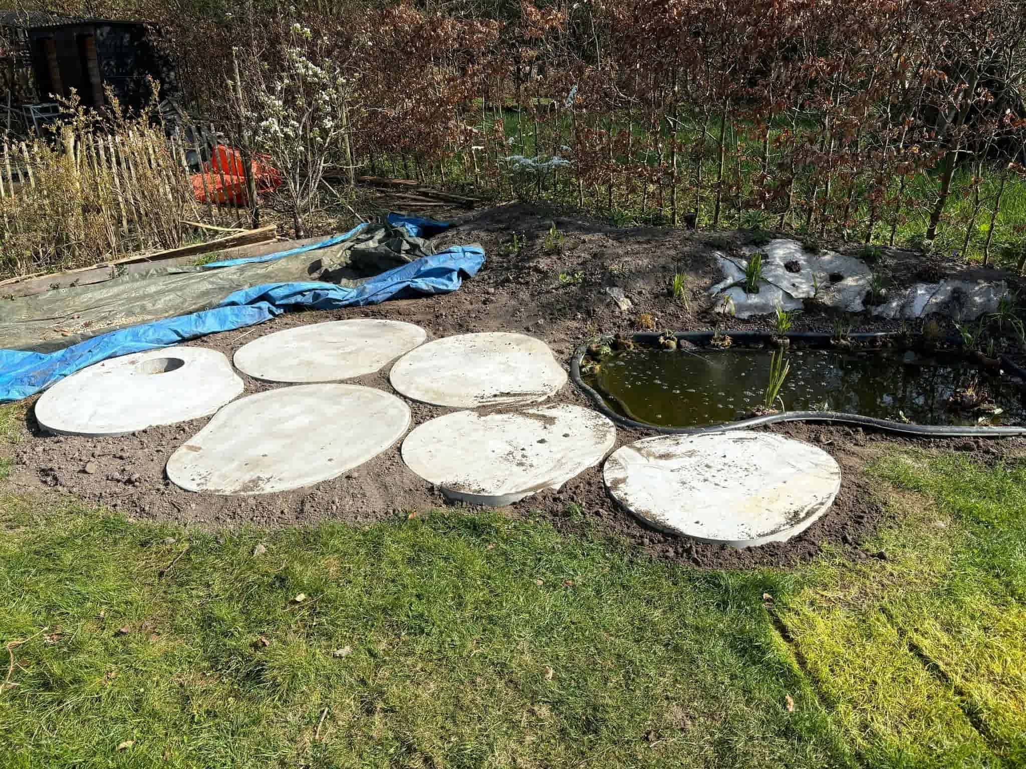 Grote ronde staptegels met grind gekocht op Betondingen!