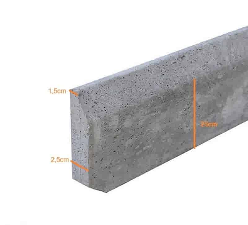 Bovenstaande boordsteen wordt ook wel een betonnen borduur genoemd en is te gebruiken als afwerking voor de rand van je terras, borders, gazon, oprit, grindpaden etc. Deze betonborduur is 100 cm lang, 30 cm hoog en 1,5 cm (boven) en 2,5 cm breed (onder) en heeft een verweerde look (B-keus). Tevens is de betonborduur voorzien van lichte wapening.