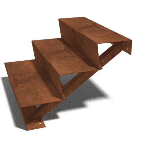 Deze trappen worden vervaardigd uit hoogwaardig Corten-A staalplaat. Deze metaalsoort heeft als unieke eigenschap dat het een zeer dichte oxidehuid (roest laag) vormt. Doorroesten is hierdoor onmogelijk. Door de dichte oxidehuid wordt het dieper liggende materiaal afgeschermd van zuurstof, hierdoor wordt de oxidatie sterkt vertraagt terwijl de corrosie zich wel voortzet.