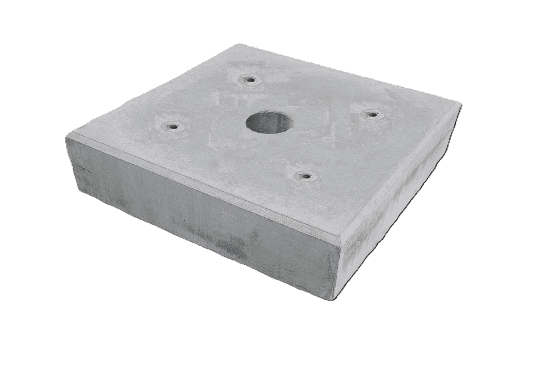 Bovenstaande funderingsblokken 100x100x15 cm hoog M16 zijn te gebruiken als fundering voor het plaatsen van betonpoeren. Deze blokken verhogen het draagoppervlak in de grond, waardoor de betonpoeren stabieler zullen staan en de constructie dus op een betere wijze ondersteund wordt. De funderingsblokken zijn voorzien van een wapening en worden geleverd in een grijze kleur. Gemaakt van zelfverdichtend beton. Totaal gewicht: 360 kg.
