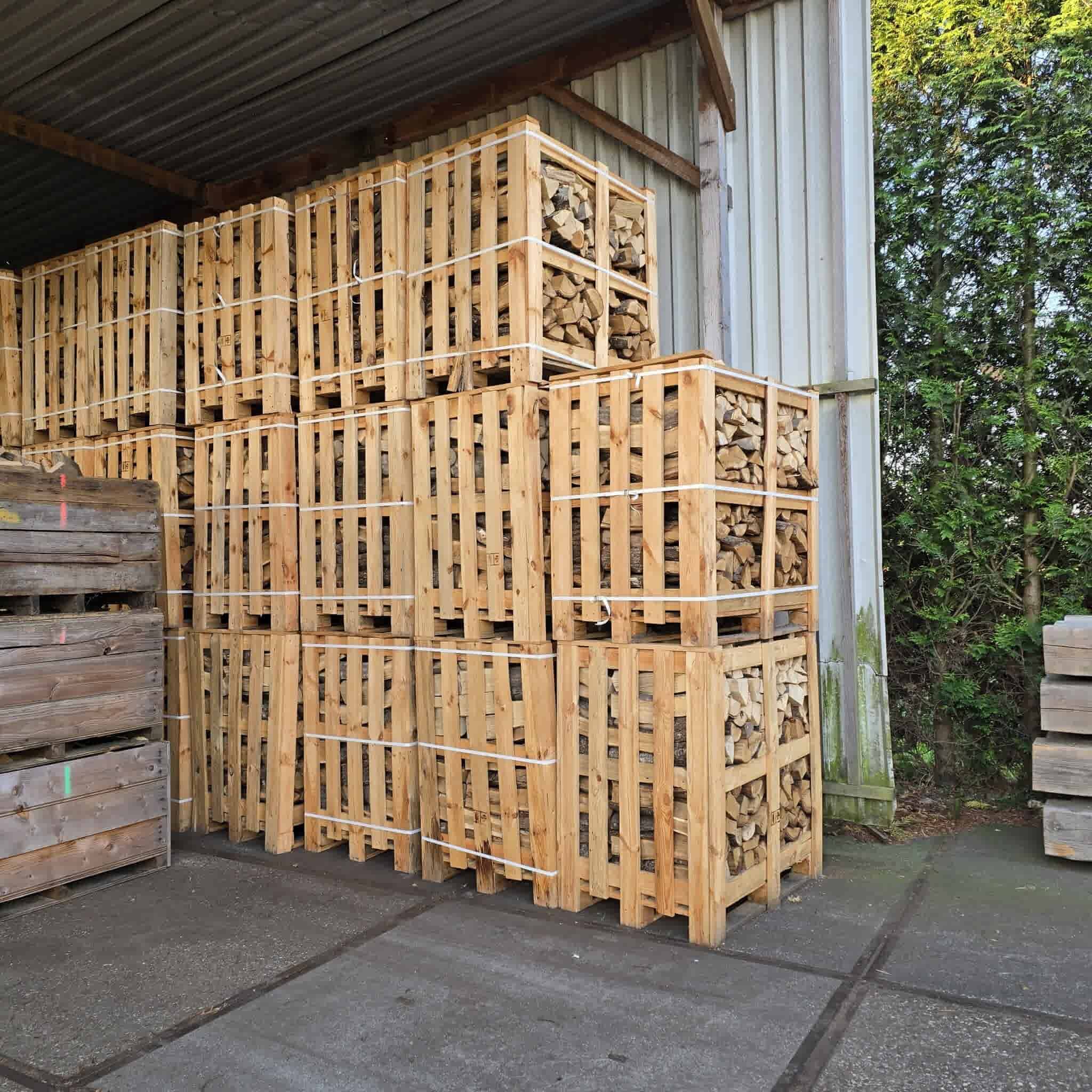 Krat haardhout bevat Beuken en Eikenhout gestapeld.