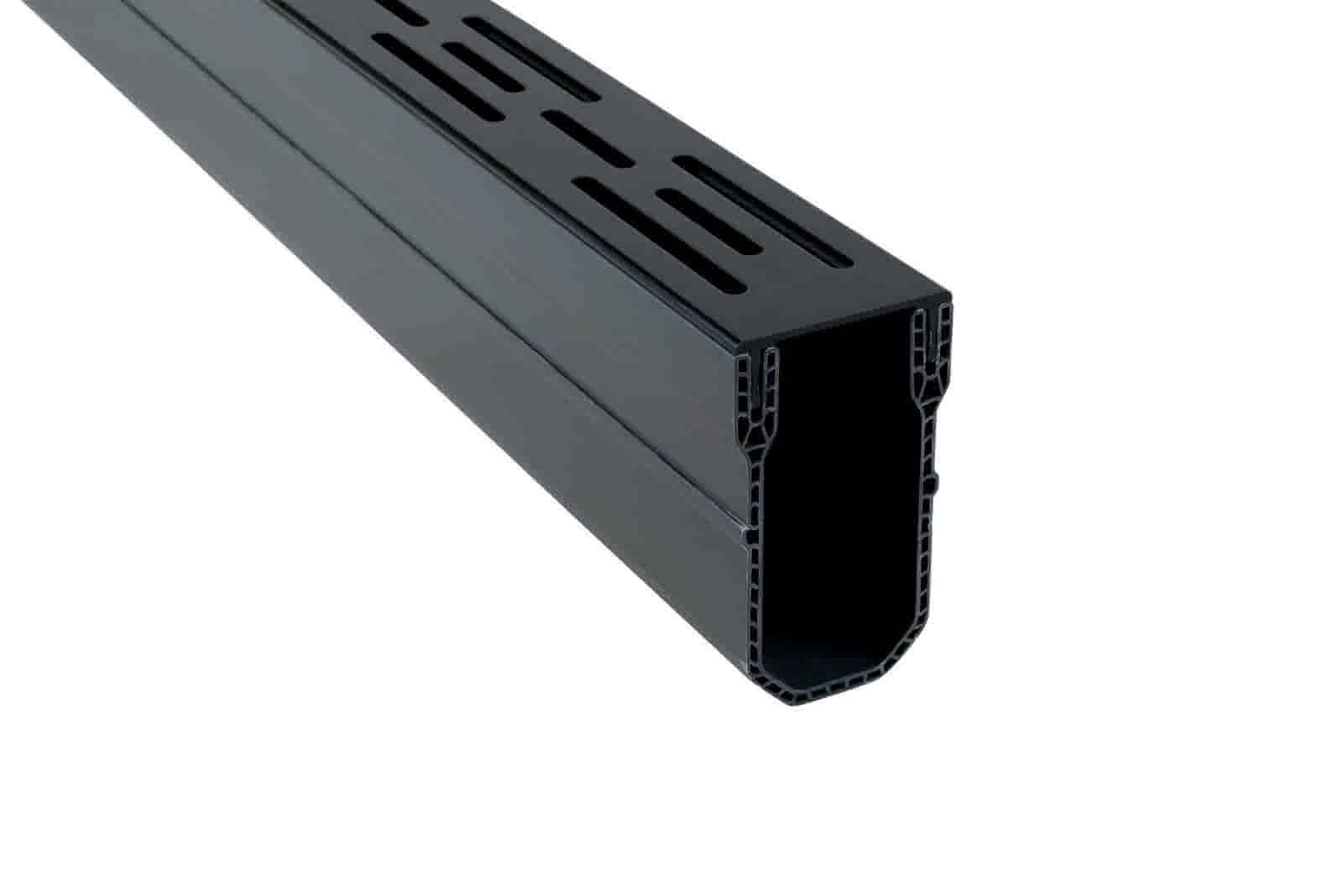 Deze zwarte lijngoten bieden je een stijlvolle oplossing om je regen- en afvalwater effectief af te voeren. Bovenstaande afvoergoot is zwart en voorzien van een aluminium rooster en is 100 cm lang en 6x10 cm breed en hoog. Door de luxe afwerking zijn de lijngoten naadloos te integreren in elke buitenruimte, denk hierbij aan moderne, strakke tot traditionele tuinen. Bovenstaande lijngoot heeft belastingsklasse A15 (geen verkeersbelasting).