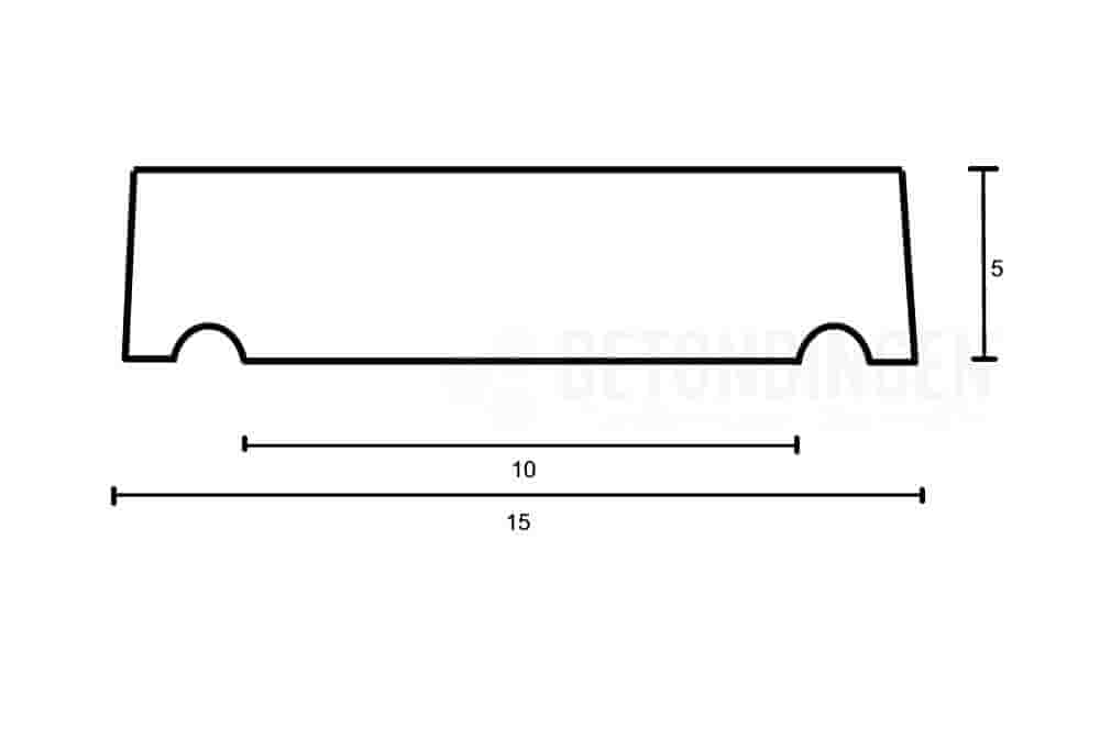 Soort beton: zelfverdichtend beton Kleur: grijs Gewicht: 18 kg Variant: vlak Waterhol van ±1 cm: ja, binnenkant waterhol zit op 2,5 cm van de rand* Hoogte: 5 cm Lengte: 100 cm Breedte: 15 cm -