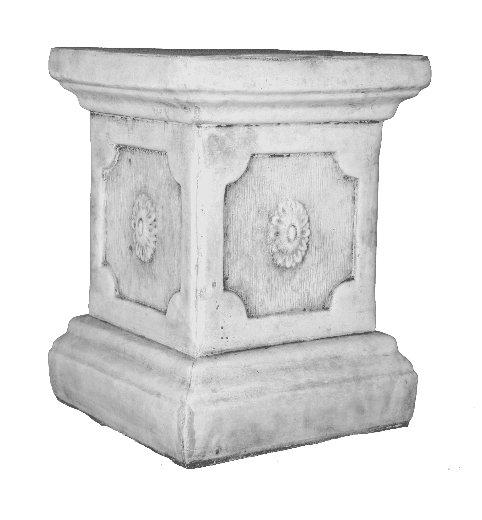 Deze vierkante sokkel met bloemdecoratie is een stevige elegante basis voor beelden, planten of andere decoratieve objecten. Het vierkante ontwerp is versierd met subtiele bloemmotieven. Waardoor het een klassieke en sfeervolle uitstraling krijgt die bij diverse interieur en tuinstijlen past. Met een hoogte van 36,5 cm en een gewicht van 40,7 kg biedt de sokkel uitstekende stabiliteit. Geschikt voor zowel binnen als buiten toepassingen. Waar zou jij deze sokkel willen plaatsen?