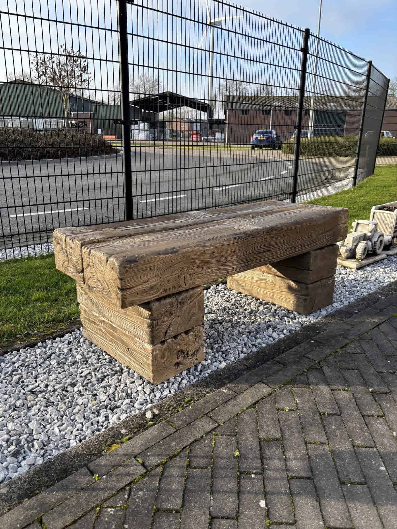Bovenstaande blokbank is een element uit onze stonewood lijn. Stonewood is beton maar met een echte houtlook en haast niet van echt hout te onderscheiden. Doordat deze stonewood banken erg robuust zijn, zijn ze uitermate goed geschikt voor openbare ruimtes zoals pleinen en parken. Maar door de houtlook hebben ze wel karakter en voegen ze een gezellige, traditionele charme toe aan je tuin, terras of buitenzitplaats.